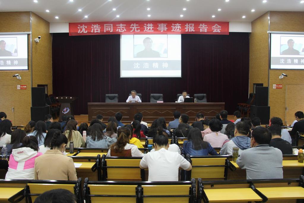 5月18日,我校邀请 滁州市行政学院副院长童子凡来校做沈浩事迹报告。校本部以及泉山湖校区、朝阳中学、淮南中学全体党员参加了报告会,聆听了报告。 沈浩同志原是安徽凤阳小岗村 党支部第一书记、村委会主任,生前为党的事业,为“三农 ”做出了重大贡献,获得全国农村基层干部“十大新闻人物”、安徽省第二批选派干部标兵、全国百名优秀村官、感动中国2009年度人物 、全国敬业奉献模范等荣誉。 沈浩病逝后,他的事迹广为流传,他的精神深深地感染着全国广大党员。 报告会上, 童 院长用大量真实的事例生动地讲述了沈浩同志生活和工作情况,事迹感人,真情动人。沈浩的事迹震撼人心,鼓励人心,四校广大党员深受教育,纷纷表示要向沈浩同志学习,忠于党,忠于人民,努力做好本职工作,为社会做贡献。