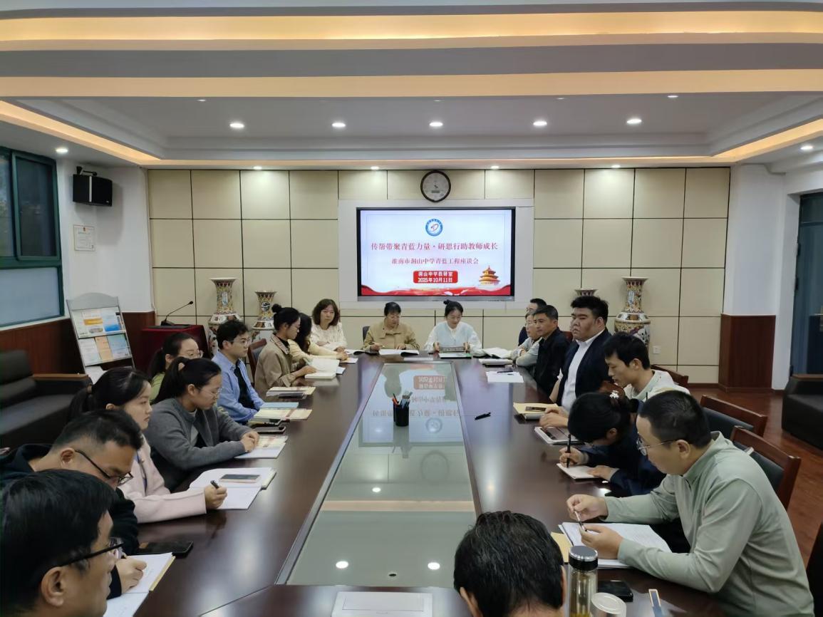 为了深化“青蓝工程”实效,全面了解新教师的教育教学情况,凝聚多方力量促进新教师专业成长,为学校教育教学工作提质增效和学校课程建设高质量发展奠定坚实基础,2025年10月11日下午,我校“传帮带聚青蓝力量研思行助教师成长”专题座谈会如期举行。王校长、童书记、教研室汤伟、赵海波、指导教师及新教师参加了座谈会,本次会议由教研室副主任赵海波主持。