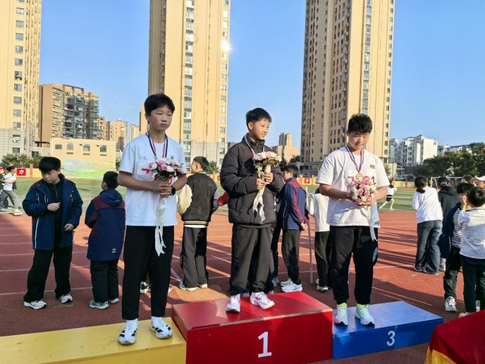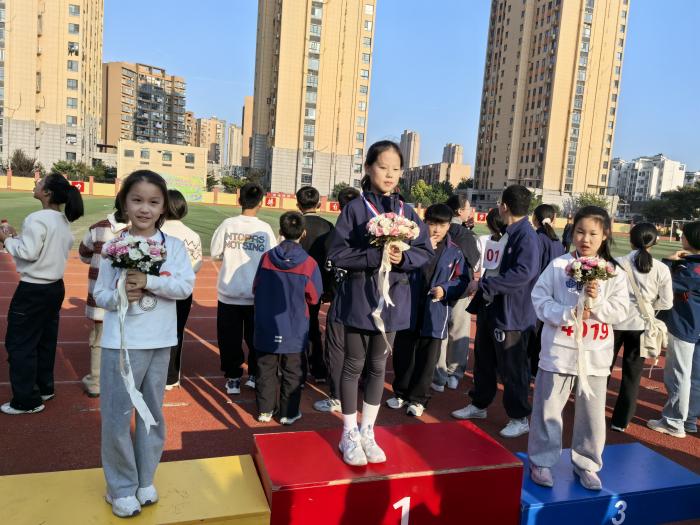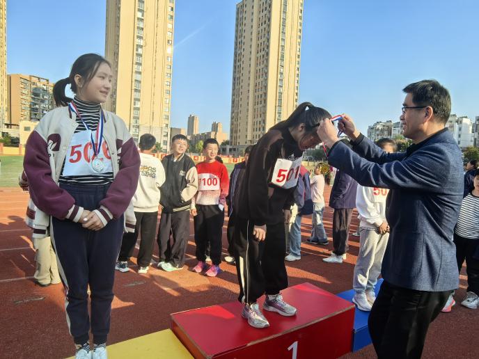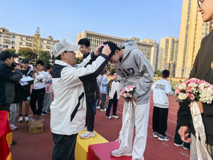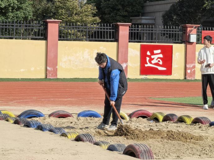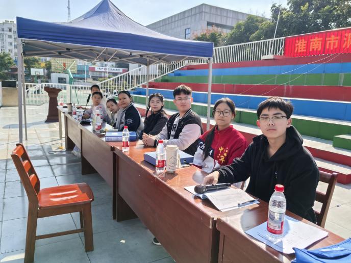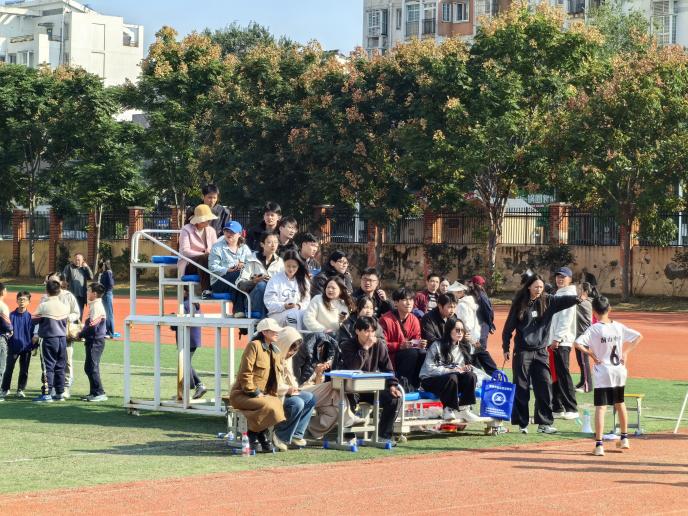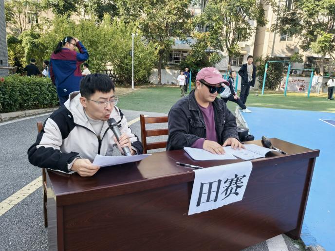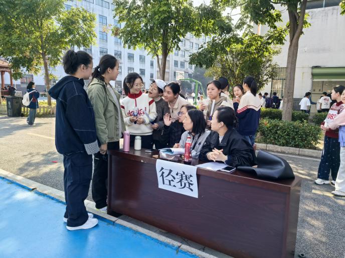 热闹的赛场背后,有一群身影同样值得铭记。老师们分工明确,有的站在赛道旁维持秩序,确保比赛安全;有的手持记录表和计时器,认真记录每一位选手的成绩,不敢有丝毫懈怠;还有的老师穿梭在赛场各处,及时为受伤的同学处理伤口,轻声安抚他们的情绪。学生志愿者们佩戴着 “志愿者” 徽章,主动帮运动员拿衣物、递水,在看台与赛场间奔波,遇到需要帮助的同学,总会第一时间伸出援手。这些幕后工作者没有站在聚光灯下,却用自己的行动为运动会筑起坚实的 “后盾”,成为赛场上一道低调而动人的风景线。